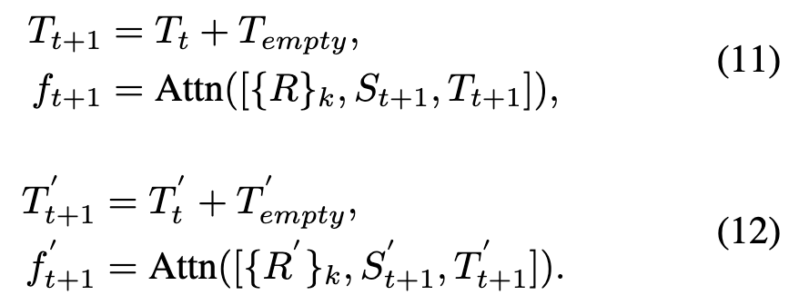 另一方面,当执行多模态跟踪任务时,当前的时序令牌关联注意力机制也同样适用。具体来说,与可见光时序令牌类似,多模态时序令牌 是一个用零初始化的向量,用于在多模态跟踪场景中提取目标实例的外观和时空定位信息。公式表示如下: