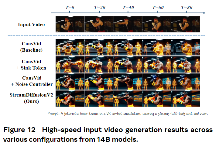 注:从左上到右下:参考视频、StreamDiffusion、Causvid、StreamDiffusionV2