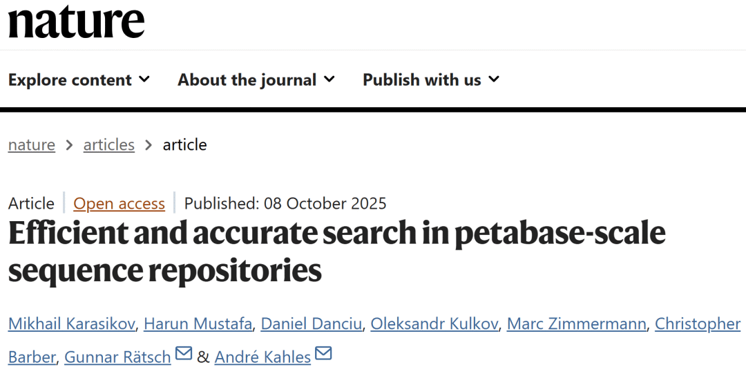 Karasikov, M., Mustafa, H., Danciu, D. et al. Efficient and accurate search in petabase-scale sequence repositories. Nature (2025).