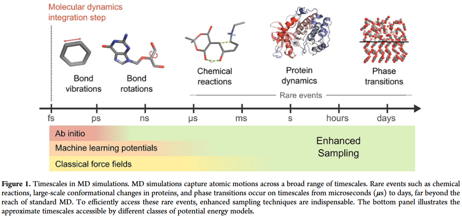• 时间尺度受限 —— 常规MD步长需控制在飞秒级,导致难以捕捉宏观过程。