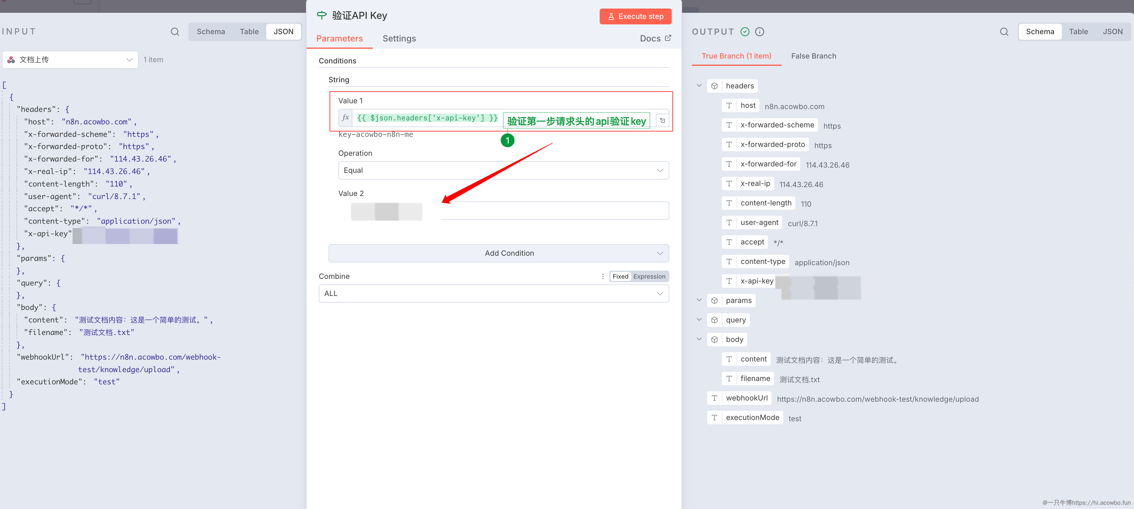 Value 1: ={{ $json.headers['x-api-key'] }}