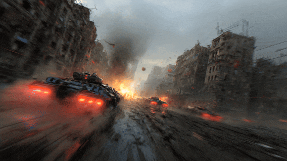 剧烈的爆炸映亮了女主的脸,女主的爱人和家园都毁掉了,但她不能回头,必须继续战斗。