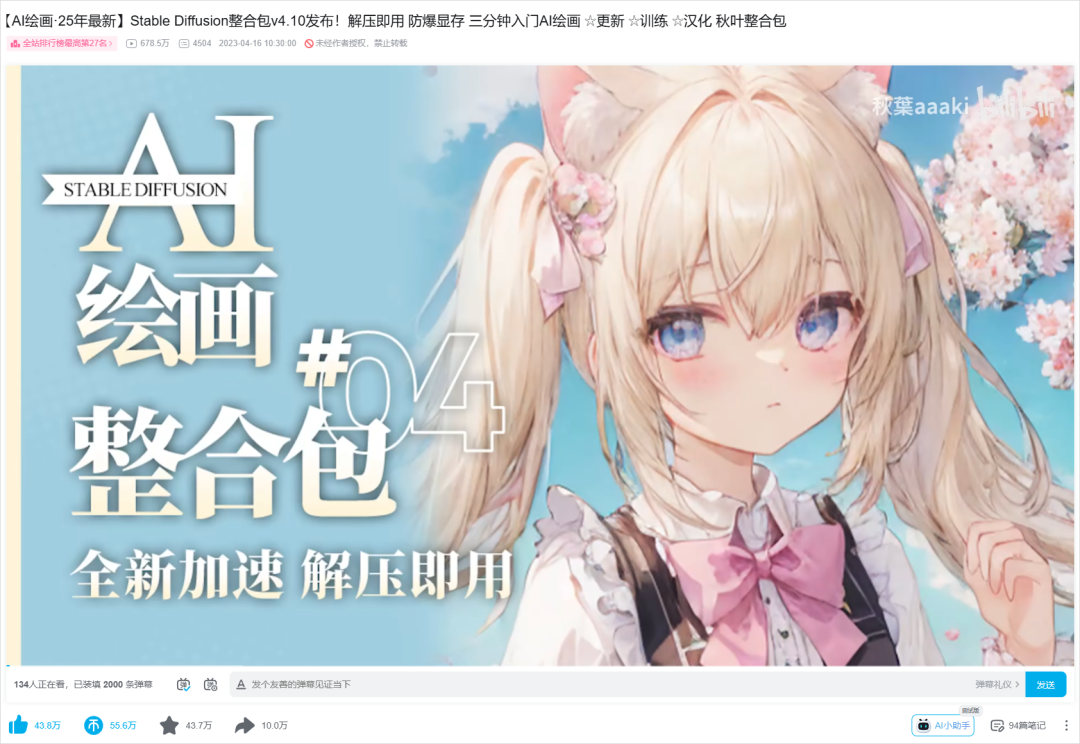 在那个时候,在赛博佛祖@秋業aaaki的整合包加持下,SD被推向了普罗大众,我相信你们一定有很多人,都下载过这个整合包。