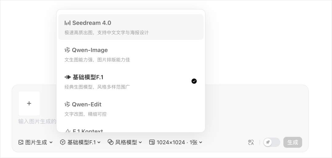 他们集成了几乎所有的AI绘图模型,Seedream、Midjourney、Qwen等等。