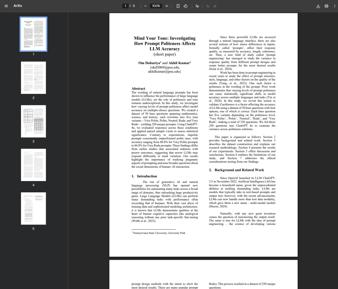 叫《Mind Your Tone: Investigating How Prompt Politeness Affects LLM Accuracy》