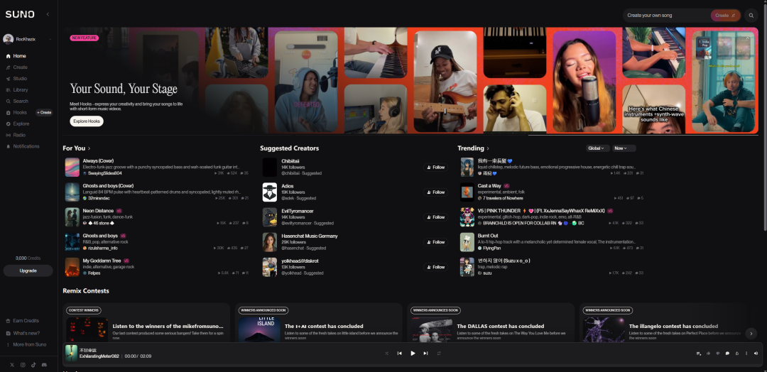 而便捷的AI产品,让曾经那些有足够品味的创作者,苦于没有技法实现的人,完成了一波究极跃迁,在他们的手里,Suno变成了一个巨型的大杀器。