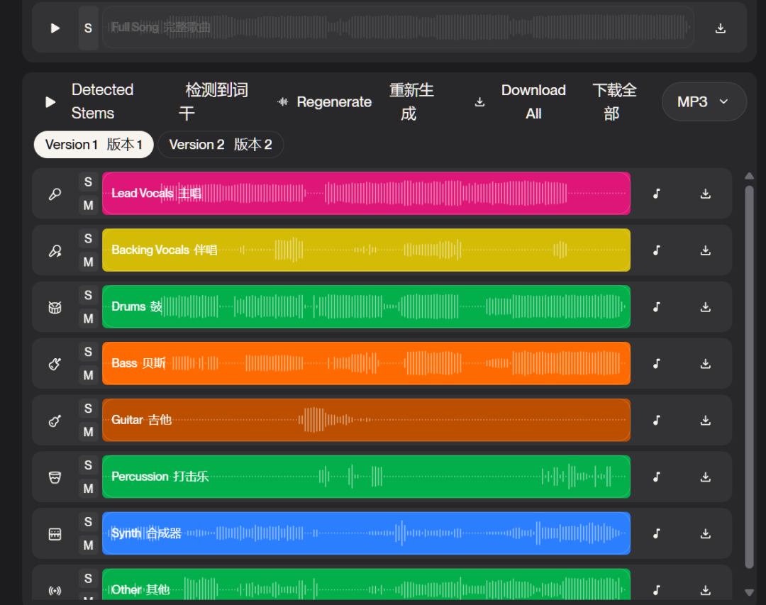 对哪一段旋律不满意,可以在右侧这里直接重新生成,替换原段。