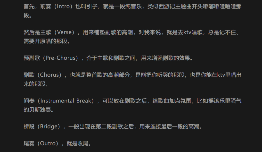 第二部分的歌曲结构,我之前也写过一次,直接截图给你们看一下。