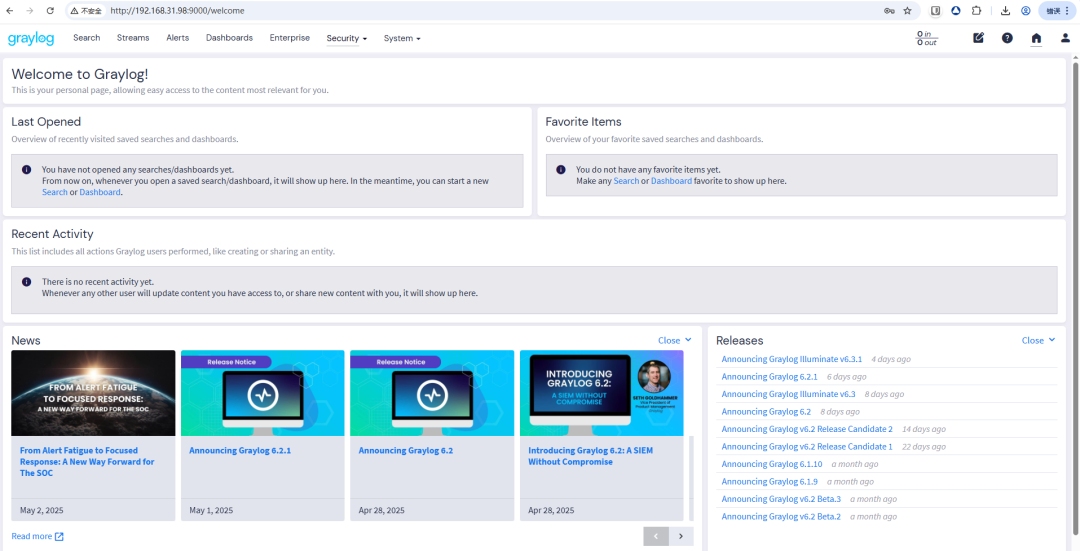 安装完成后Graylog的登录账号密码为admin/Graylog@2023