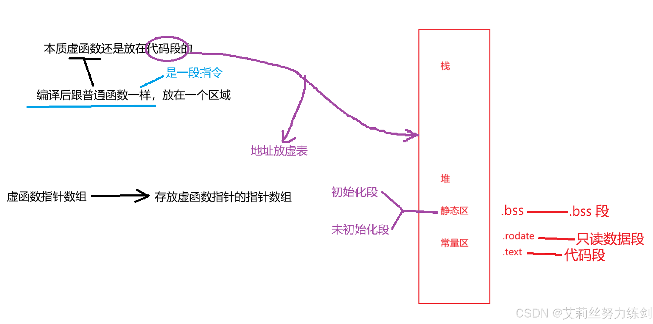 VS下,虚函数地址是存在代码段(常量区)里面的。