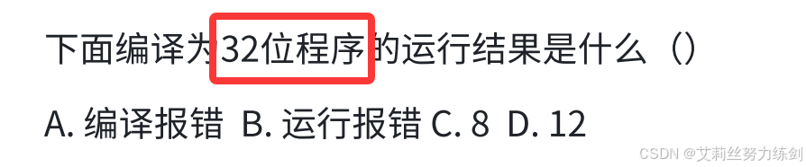 32位环境下,运行结果是12,所以选择D选项。