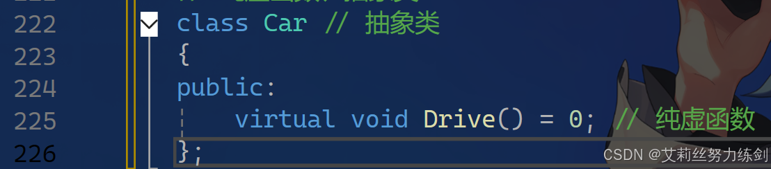 //// //Car car; // 编译报错:C2259“Car":无法实例化抽象类