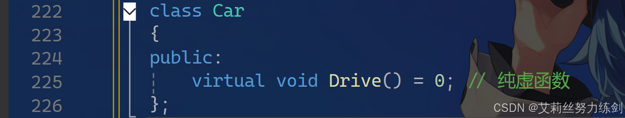 virtual void Drive() = 0; // 纯虚函数