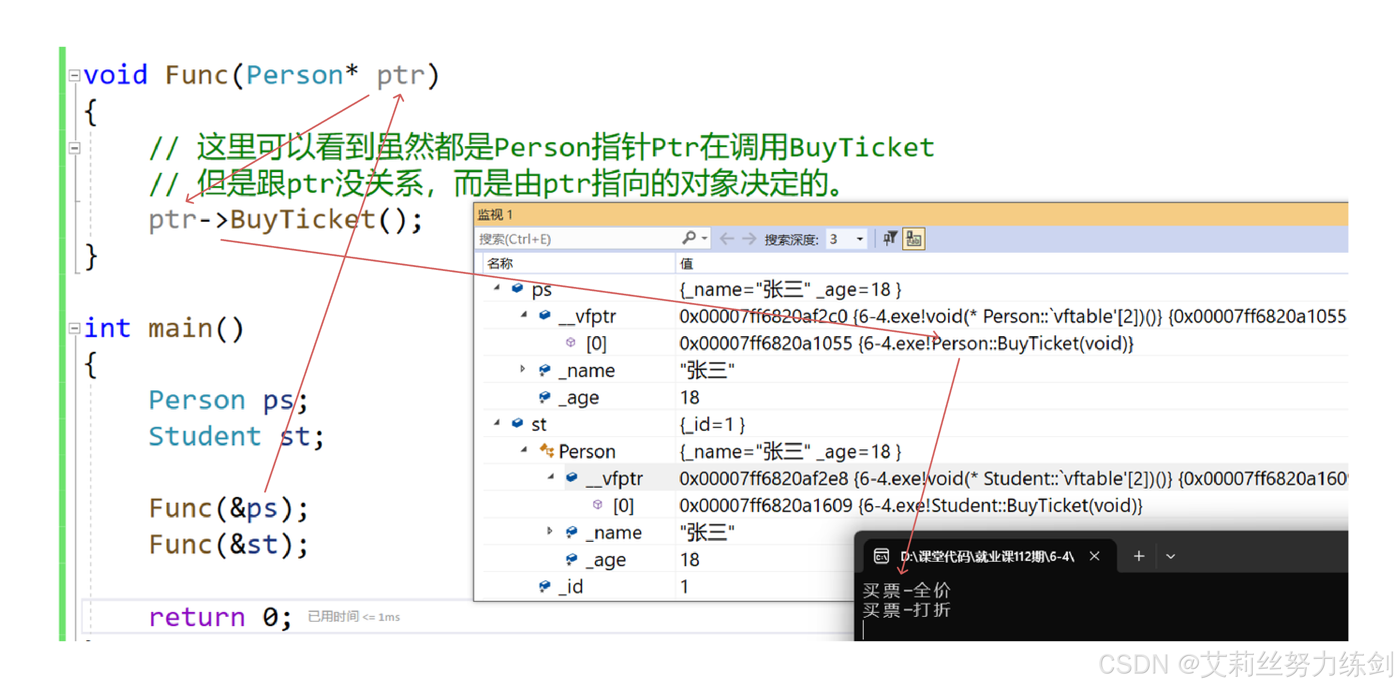 // //这里可以看到虽然都是Person指针ptr在调用BuyTicket