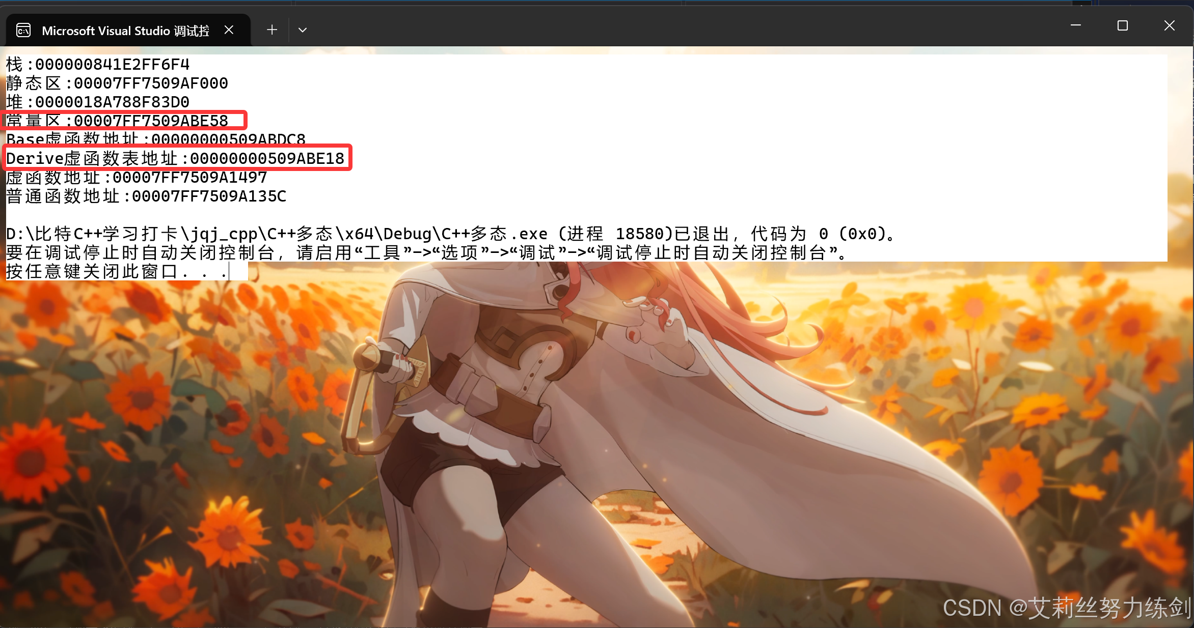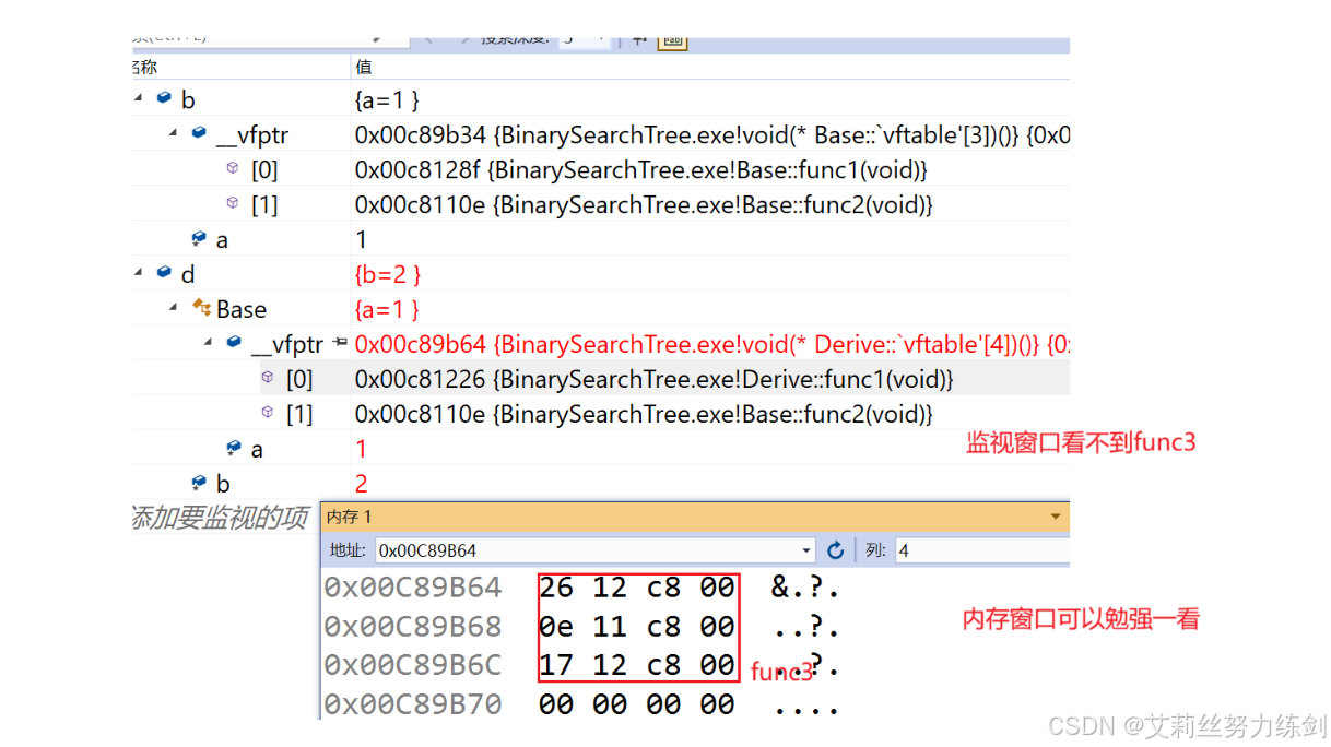 // printf("Derive虚函数表地址:%p\n", *((int*)&d));