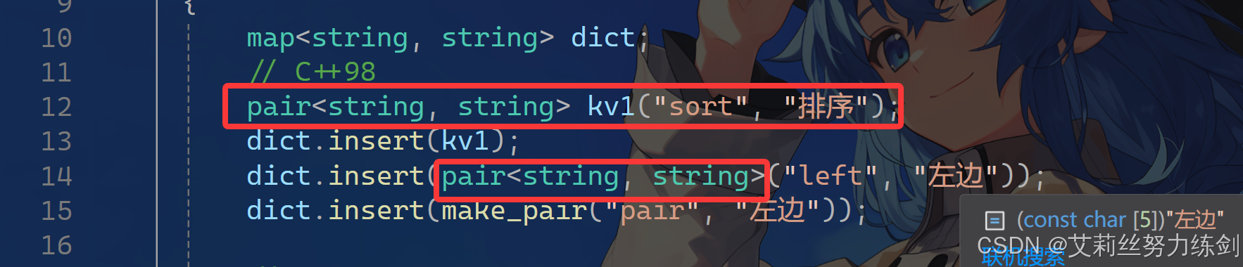 //dict.insert({ kv1,pair<string,string>("left","左边") });
