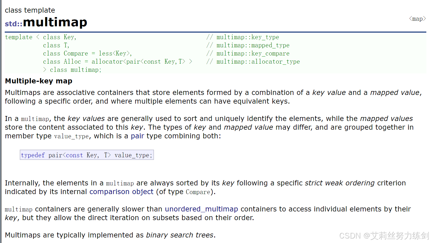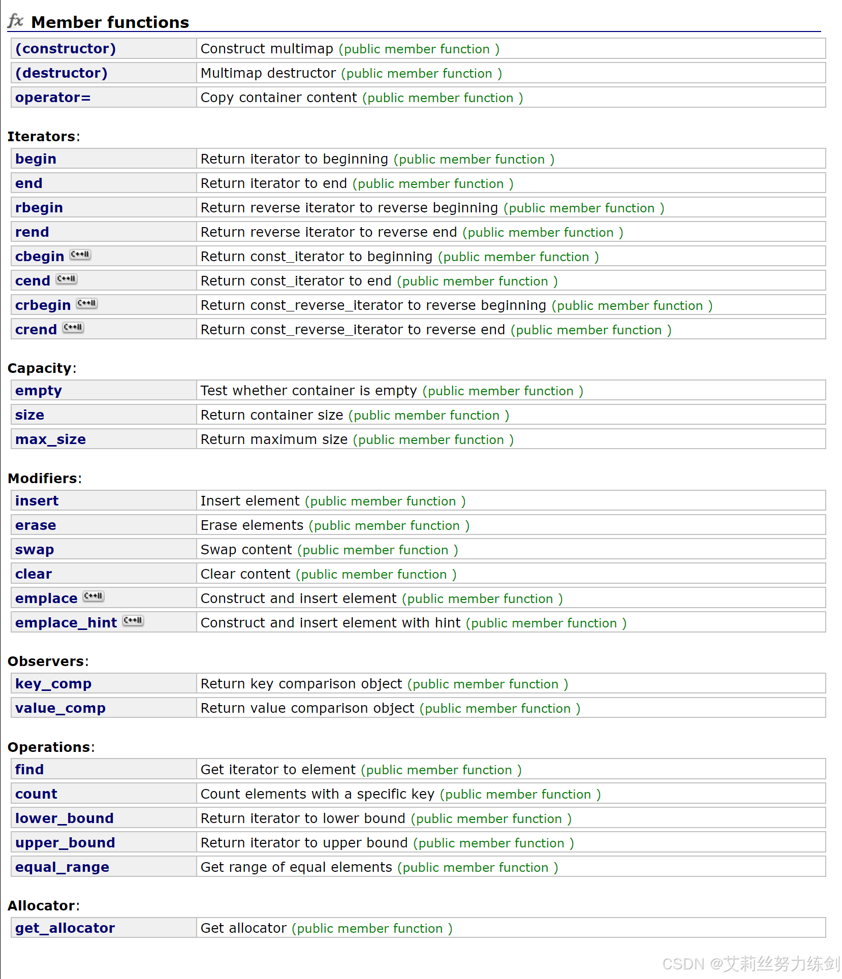 multimap和map的使用基本完全类似,主要区别点在于multimap支持关键值key冗余,那么insert / find / count / erase都围绕着支持关键值key冗余有所差异,这里跟set和multiset完全一样,比如find时,有多个key,返回中序第一个。其次就是multimap不支持[],因为支持key冗余,[ ]就只能支持插入了,不能支持修改。