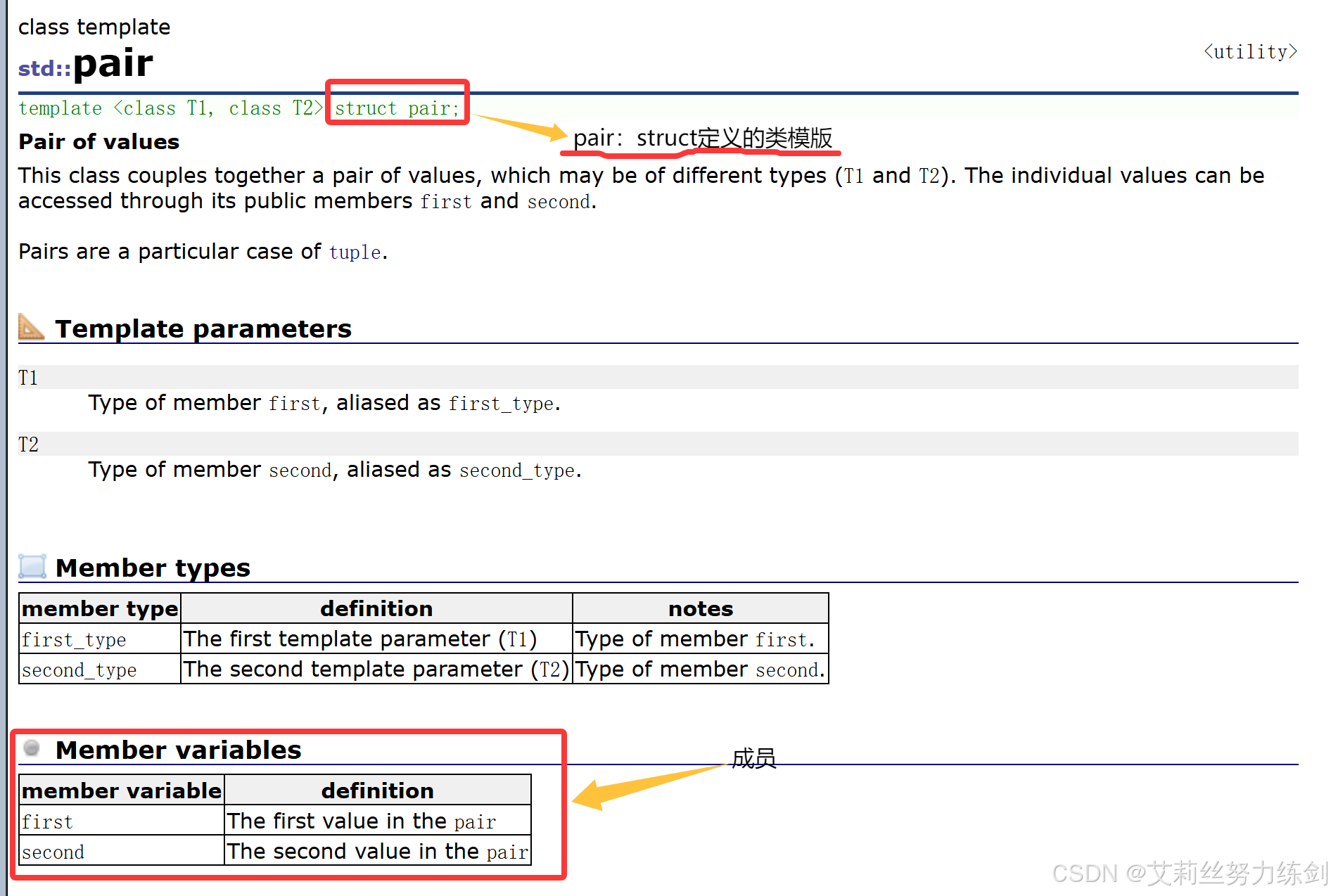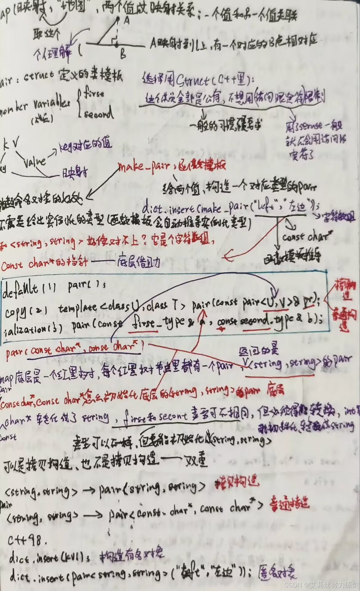 // 需要注意的是这⾥有两个pair,不要混淆了,⼀个是map底层红⿊树节点中存的pair<key, T>,