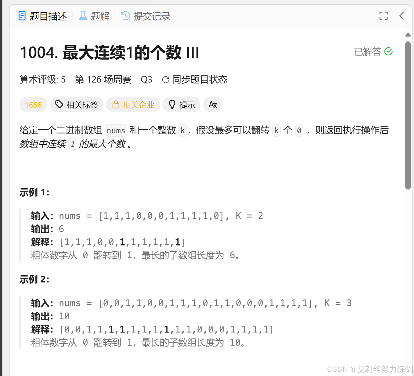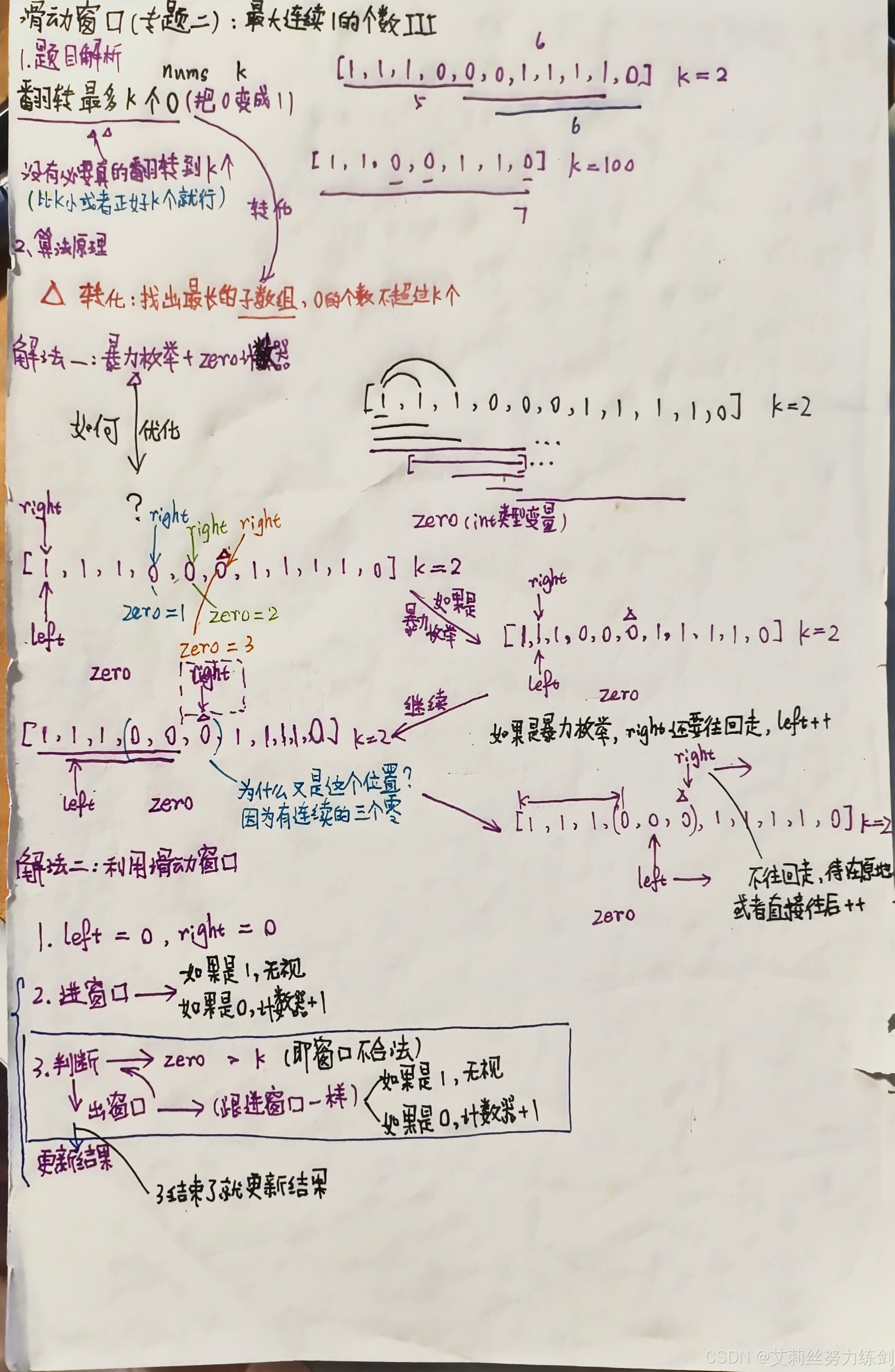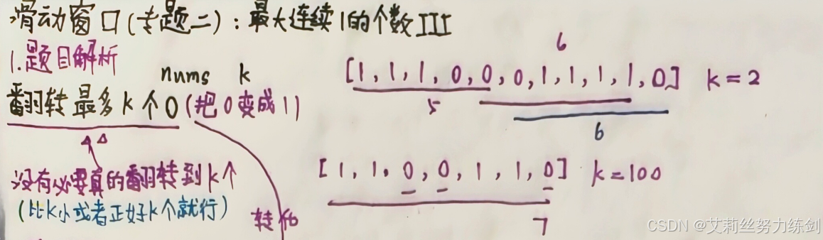 力扣题解链接:滑动窗口解决【最大连续1的个数III】问题