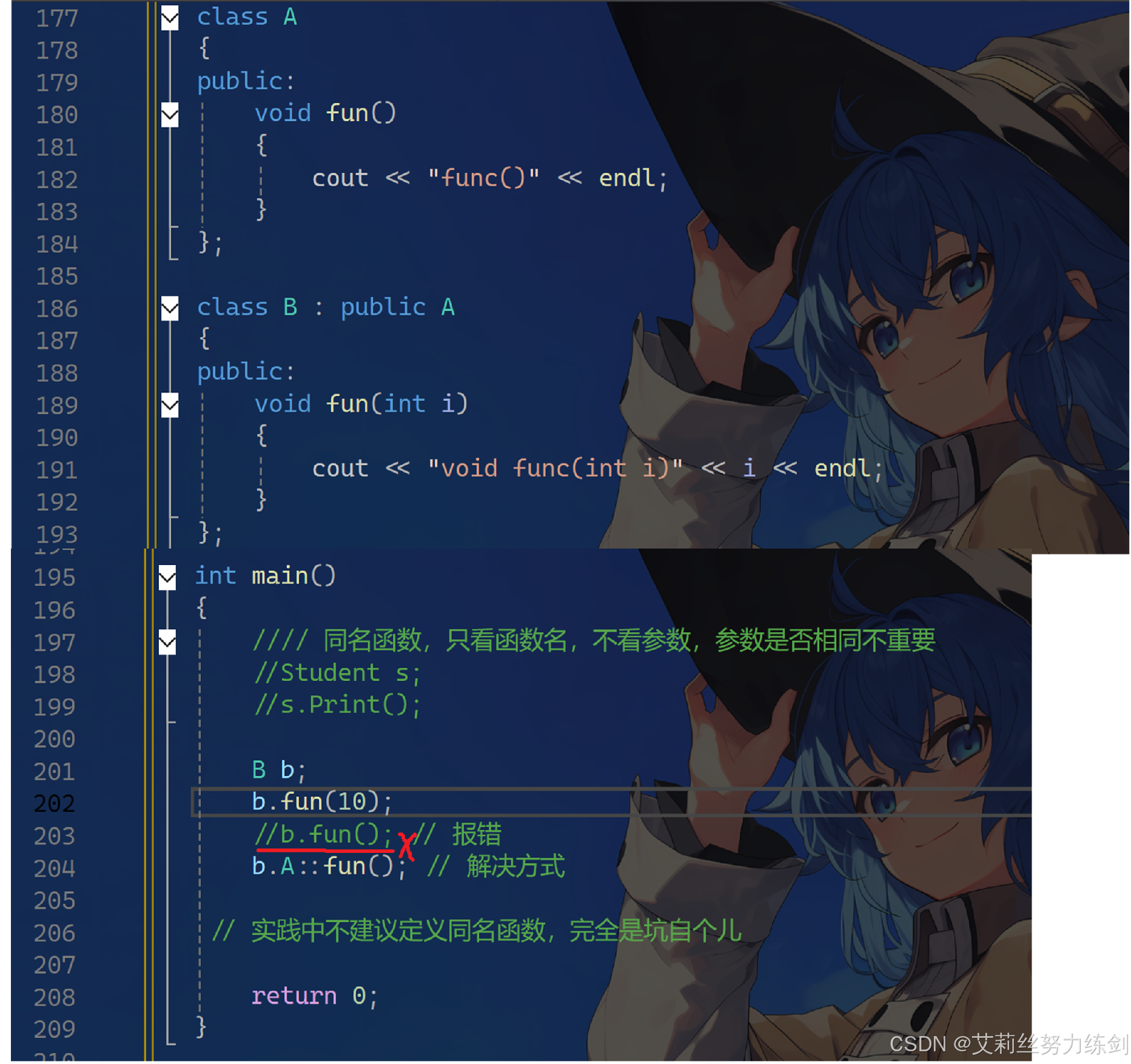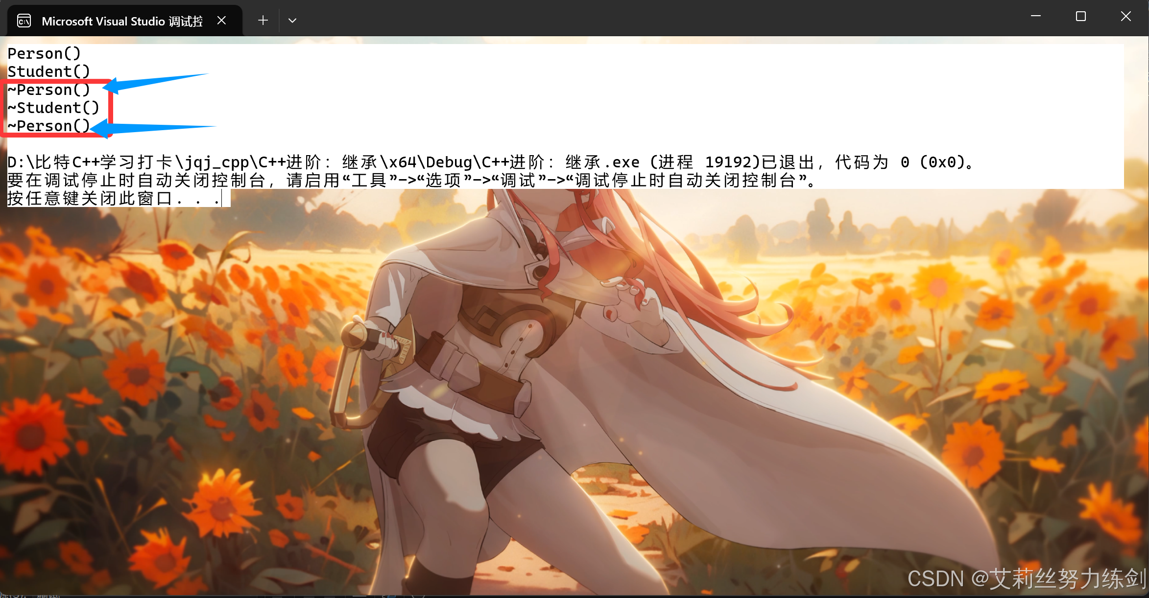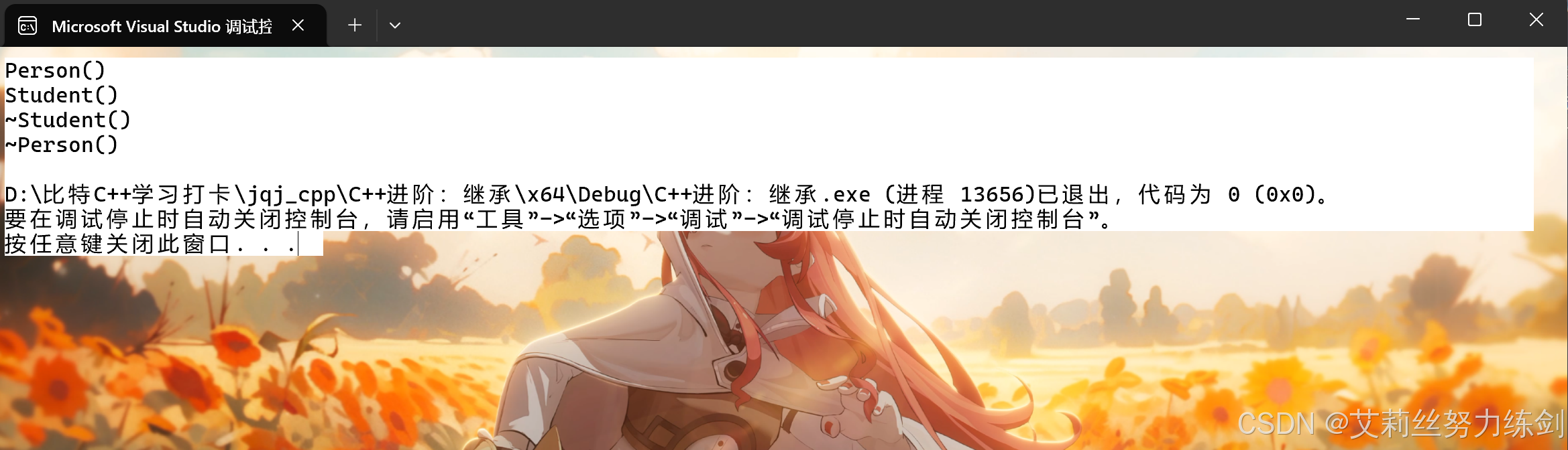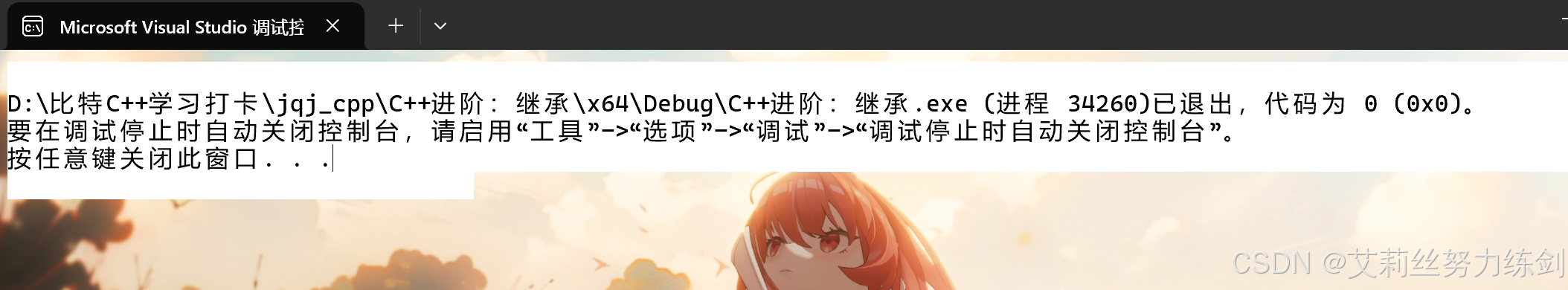 4、基类的指针或者引用可以通过强制类型转换赋值给派生类的指针或者引用。但是必须是基类的指针是指向派生类对象时才是安全的。这里基类如果是多态类型,可以使用RTTI(Run-TimeType Information)的dynamic_cast来进行识别后进行安全转换(ps:这个艾莉丝会在后面的类型转换章节再单独介绍,这里先提一下,我在Linux的开篇——Linux指令那里就提到过“没吃过猪肉还没见过猪跑吗?”,我们先见见猪跑)。