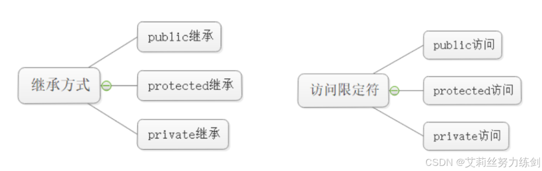 正是因为有三种继承方式和三种访问,所以才有了继承基类成员访问方式的九种变化。
