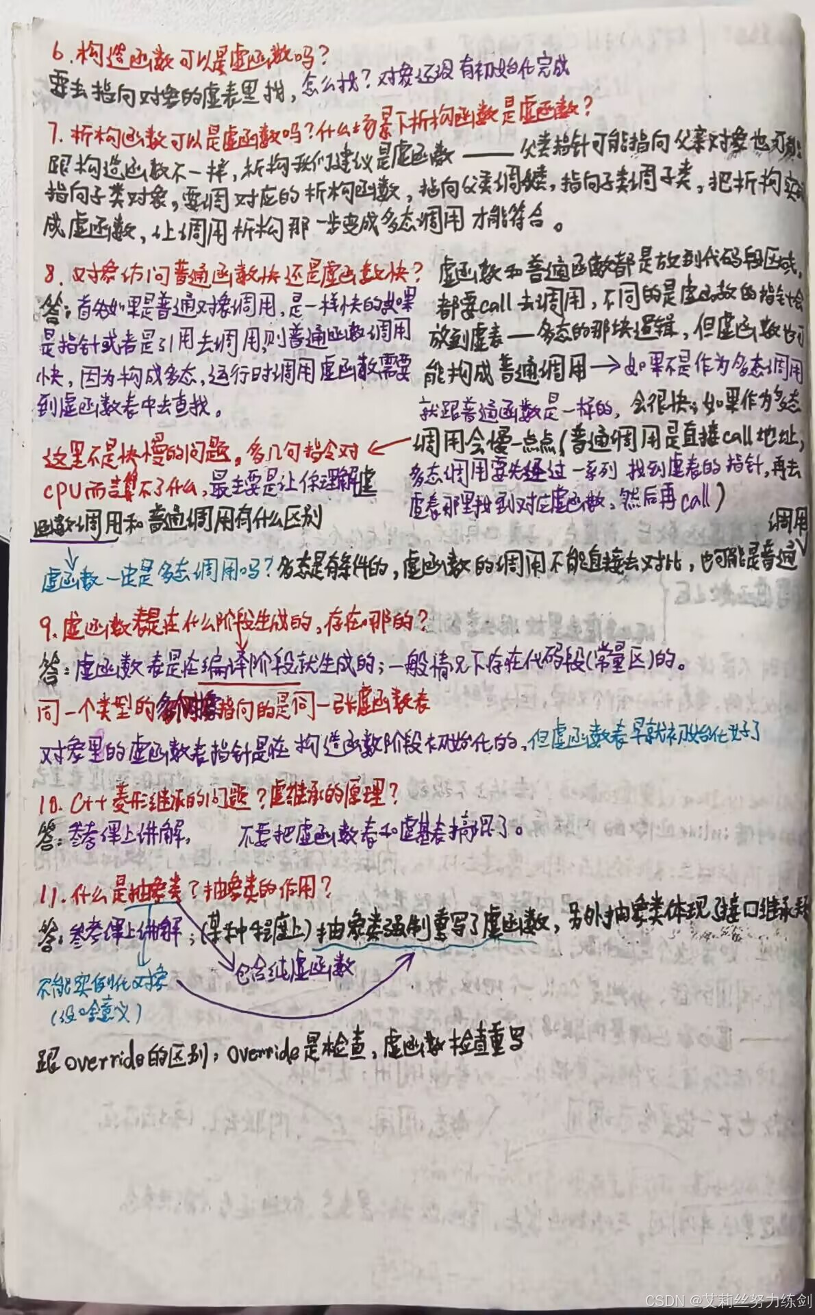 虚函数和普通函数都是放在代码段区域,都要call去调用,不同的是虚函数的指针会放到虚表——多态的那块逻辑,但虚函数的指针会放到~>如果不是作为多态调用就跟普通函数是一样的,会很快;如果作为多态调用会慢一点点(普通调用是直接call地址,多态调用要先找到虚表的指针,再去虚表那里找到对应虚函数,然后再call)。
