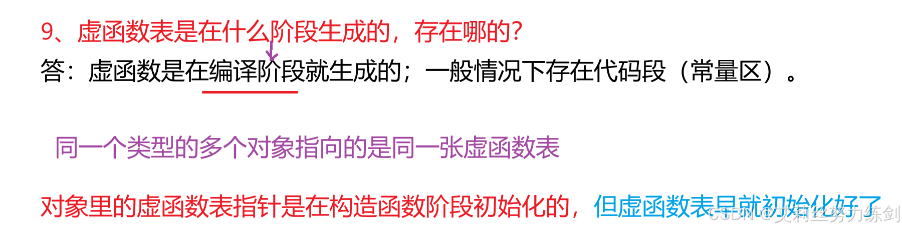 答:虚函数是在编译阶段就生成的;一般情况下存在代码段(常量区)。