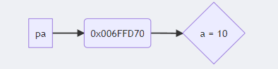 int * pa = &a;pa左边的int *中,*是在说明pa是指针变量,而前面的 int 是在说明pa指向的是整型(int)类型的对象。