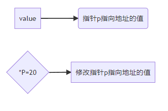 *p = 20; // 修改 p 指向地址的值,num 现在等于 20
