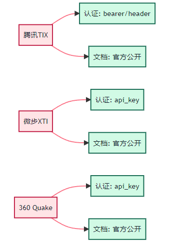 • 痛点:奇安信天眼/红雨滴、绿盟RSAS、深信服NGAF、360 Quake/天眼、微步XTI、腾讯TIX等厂商API对外高度受限(需NDA、白名单、签名、私钥),自动化平台无法直接调用。