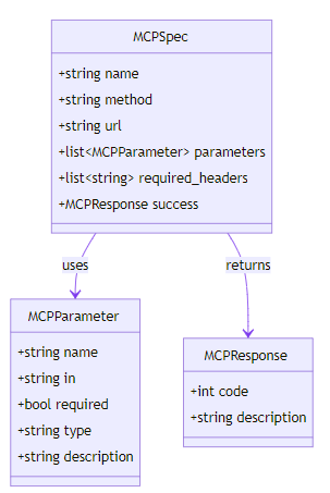 3. 标准化转换:生成 MCP 规范(Model/Module/Mapping/Proxy),统一方法签名与安全边界。