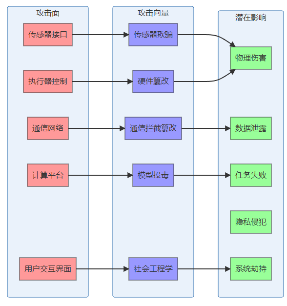 由于具身AI系统的物理特性,它面临着传统AI系统所不具备的安全风险:
