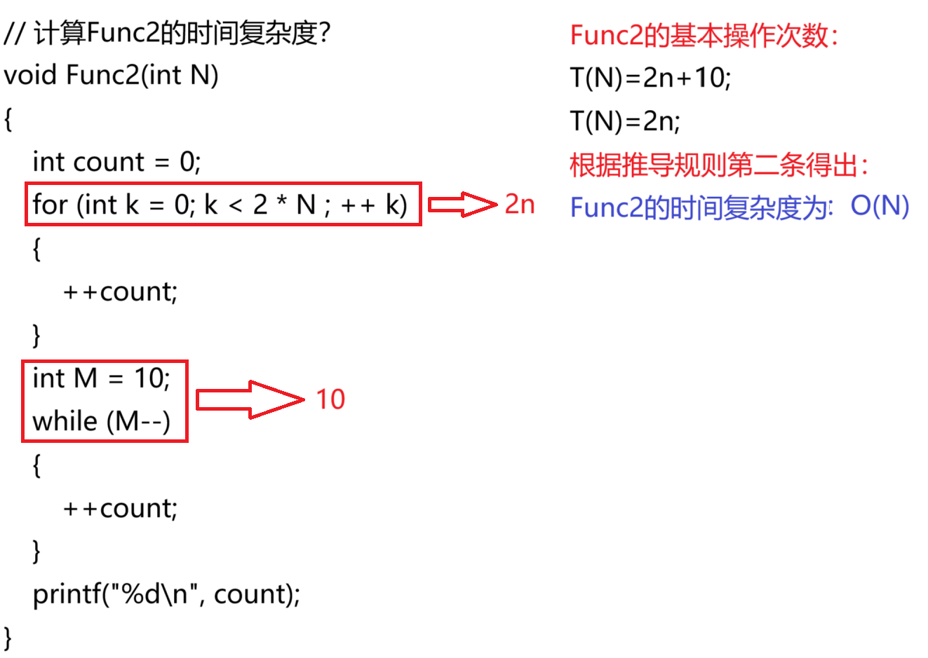 通过以上方法我们可以推导出 Func1的时间复杂度为:O(N^2)