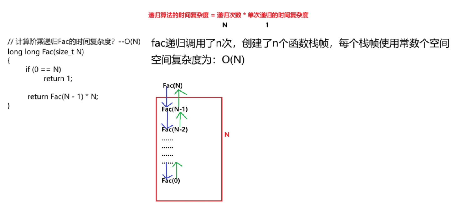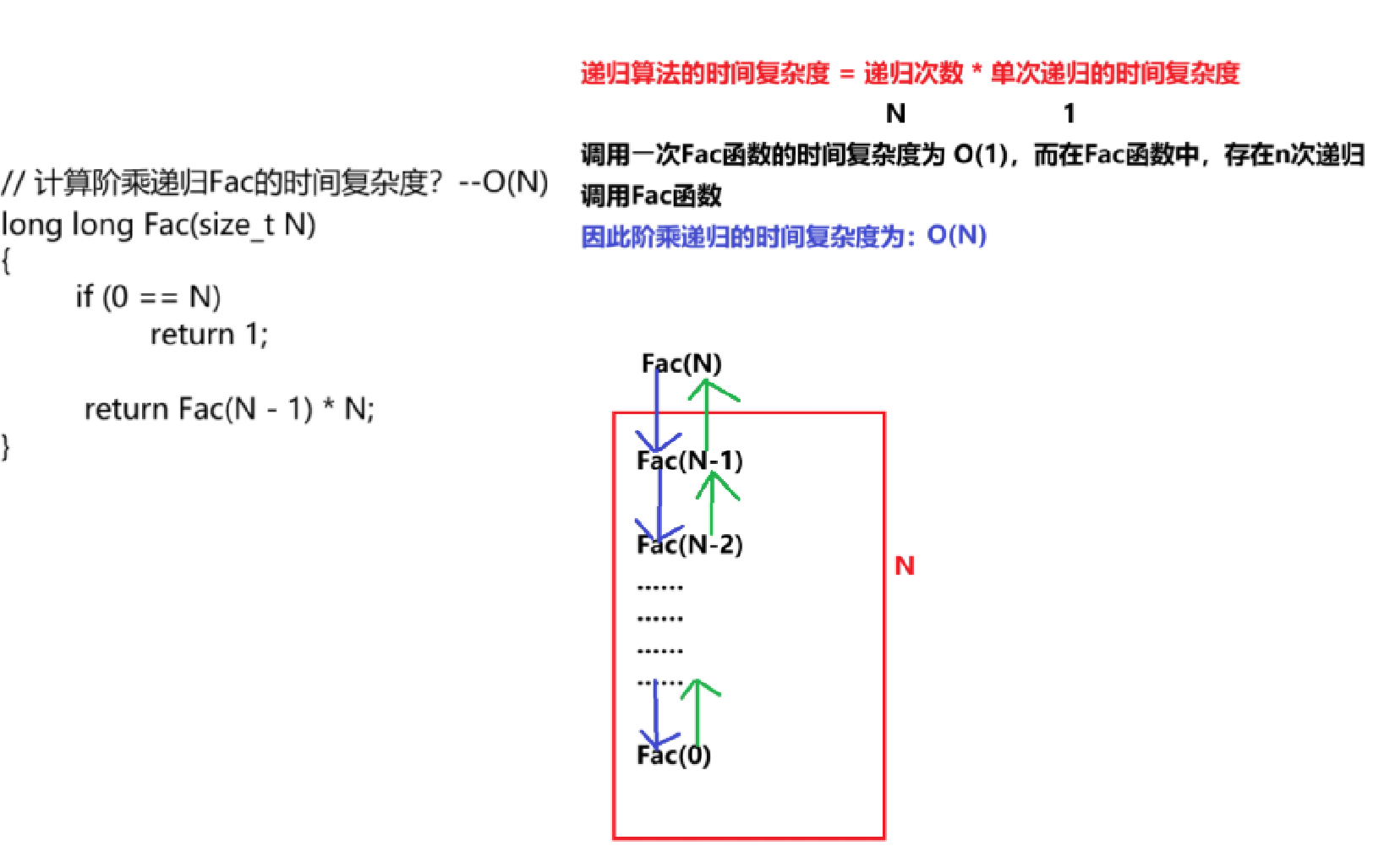 // 计算阶乘递归Fac的时间复杂度?--O(N)