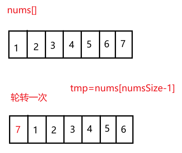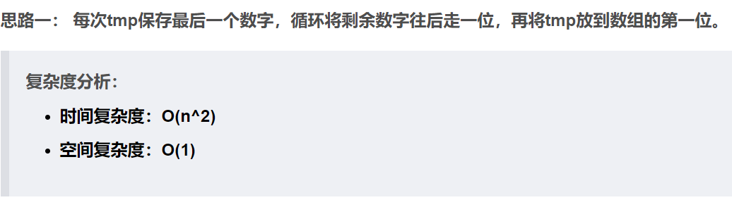 思路一: 每次tmp保存最后一个数字,循环将剩余数字往后走一位,再将tmp放到数组的第一位。