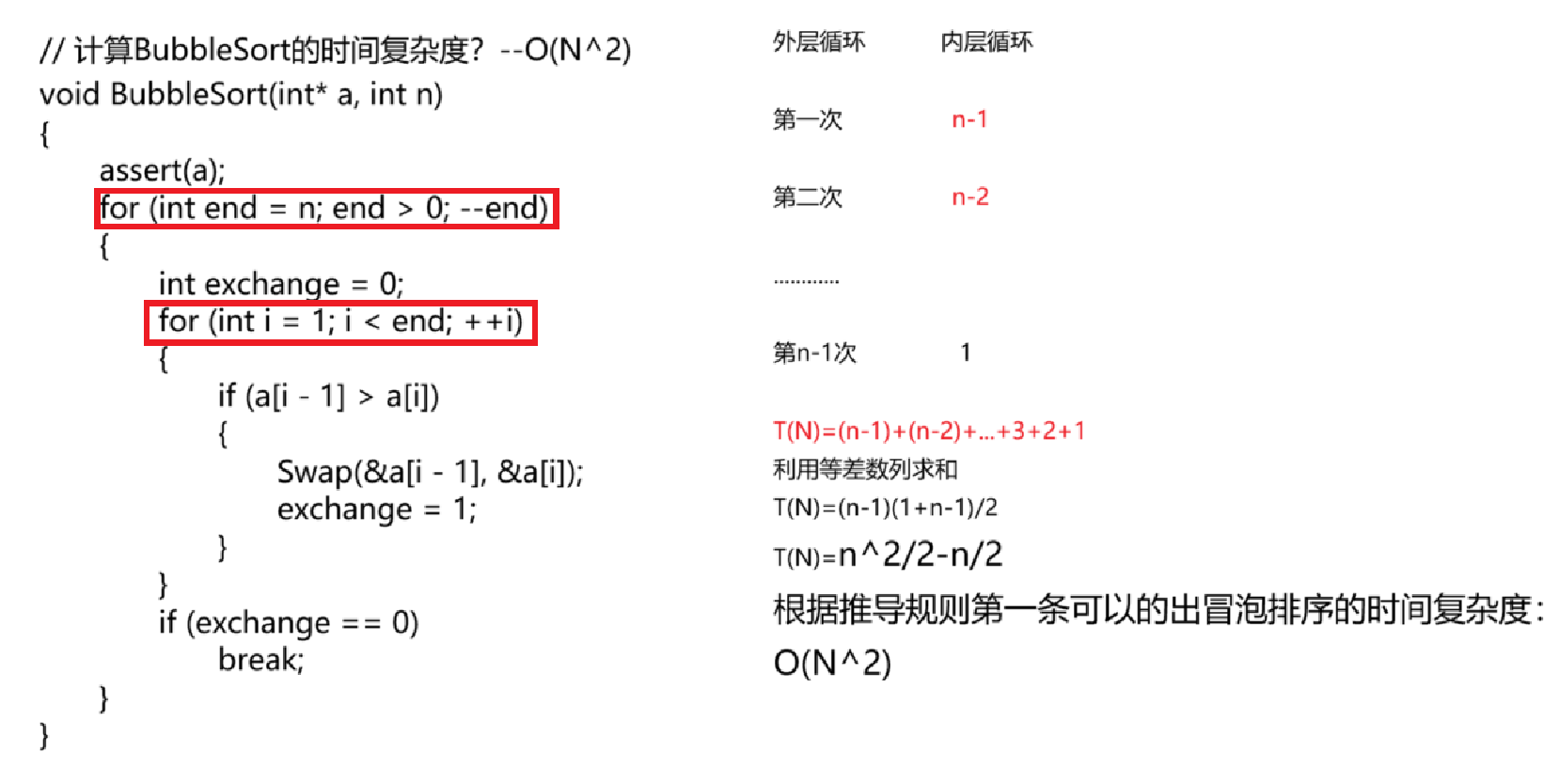 // 计算BubbleSort的时间复杂度?--O(N^2)