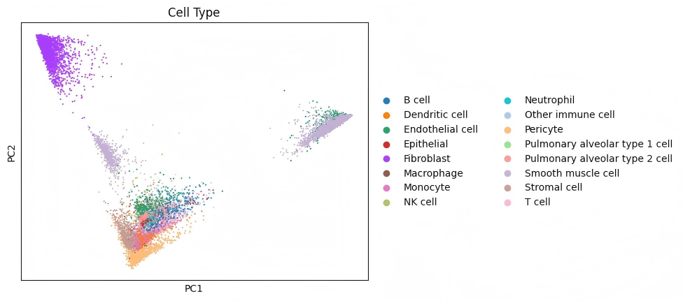 sc.pl.pca(adata, color="labels2", title="Cell Type")