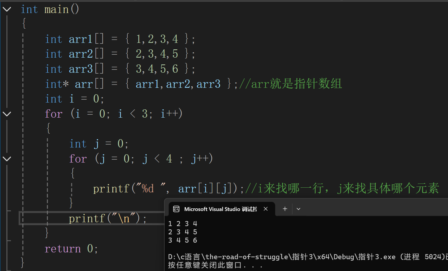 int* arr[] = { arr1,arr2,arr3 };//arr就是指针数组