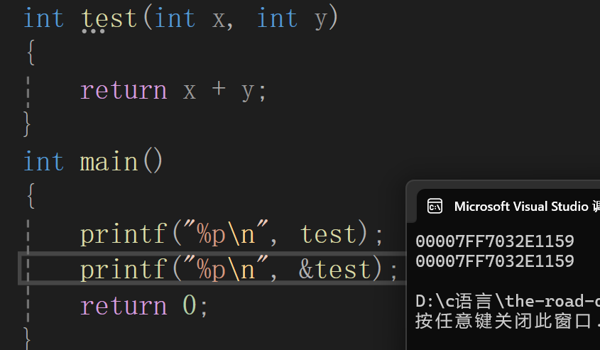 //int(*p)(int, int) = &add;//p是函数指针变量
