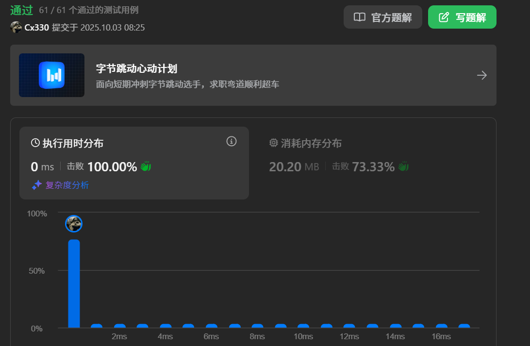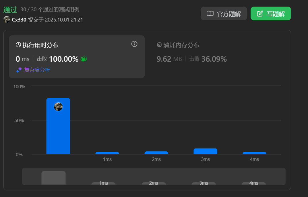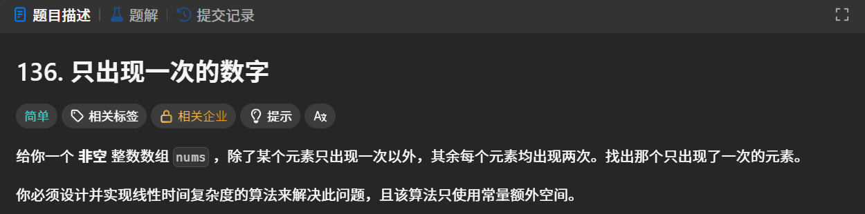 };时间复杂度:O(n),空间复杂度:O(1)。