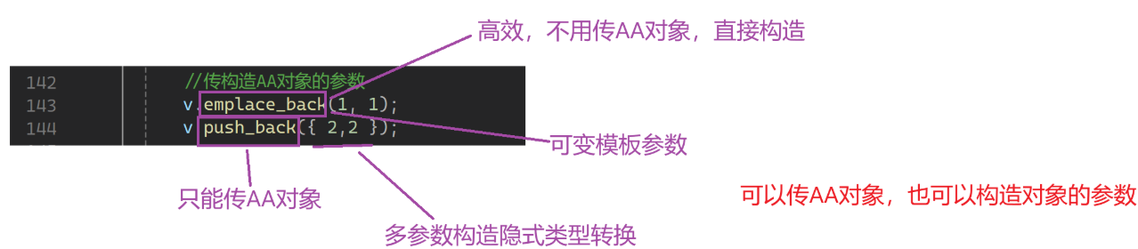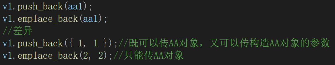 v1.push_back({ 1, 1 });//既可以传AA对象,又可以传构造AA对象的参数