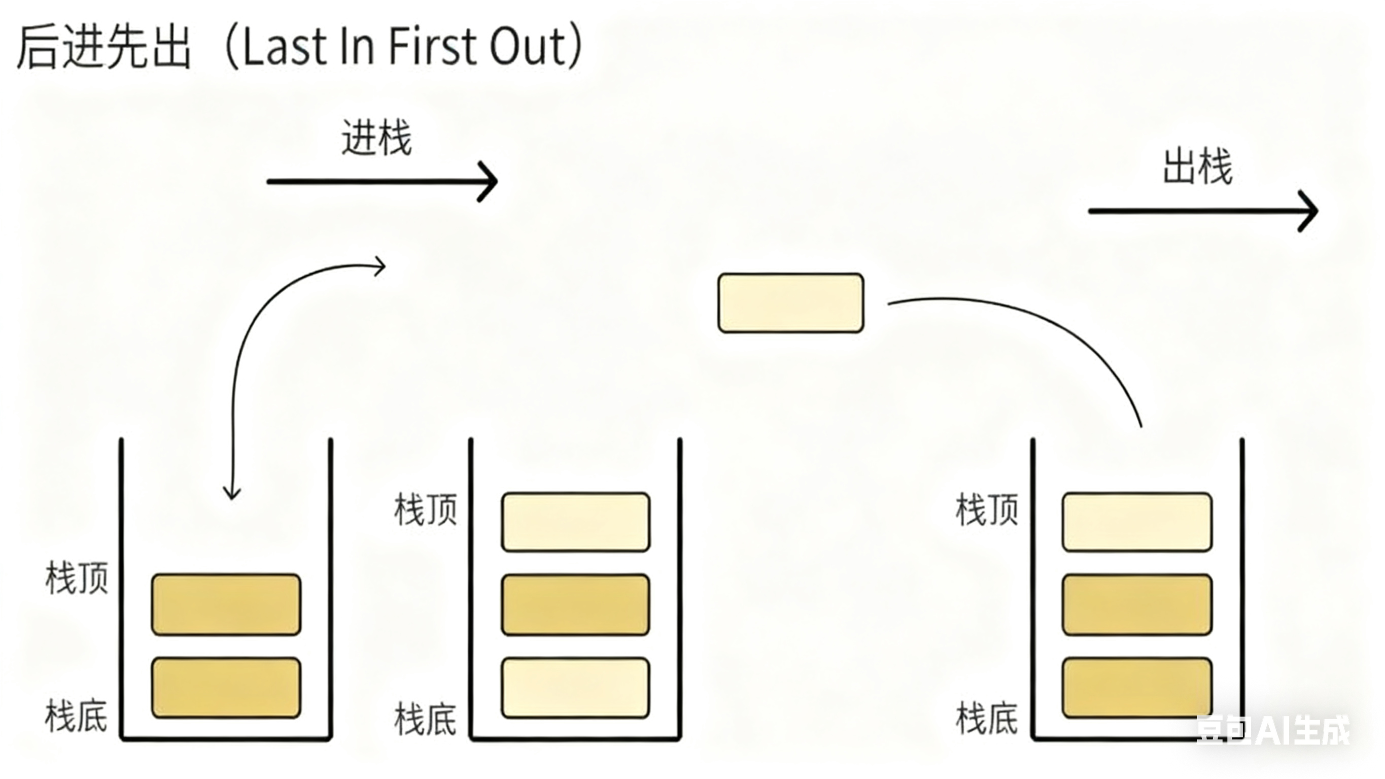 stack | 后进先出 | 仅能访问“栈顶”元素 | 函数调用栈、表达式求值、撤销操作 |