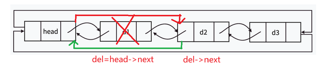 头删操作的思路和尾删相似,先还是判空,然后后续需要通过del记录下phead->next这个我们要删除的节点,再找到两个受到影响的节点,对应连上,最后释放掉del就可以了