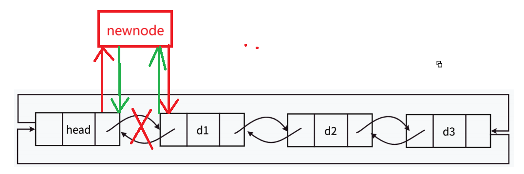 phead->prev = newnode;//头节点的prev指针指向新节点