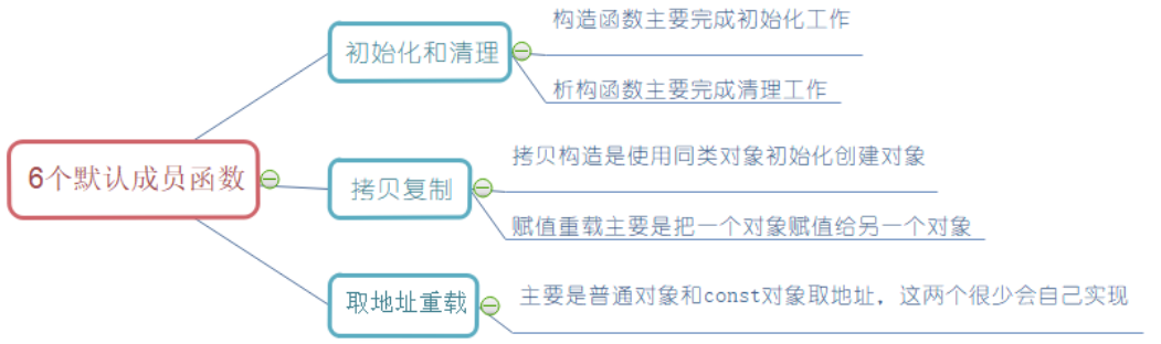 默认成员函数就是用户没有显式实现,编译器会自动生成的成员函数称为默认成员函数。一个类,我们不写的情况下编译器会默认生成以下6个默认成员函数,需要注意的是这6个中最重要的是前4个,最后两个取地址重载不重要,我们稍微了解一下即可。其次就是C++11以后还会增加两个默认成员函数,移动构造和移动赋值,这个我们后面再讲解。默认成员函数很重要,也比较复杂,我们要从两个方面去学习: