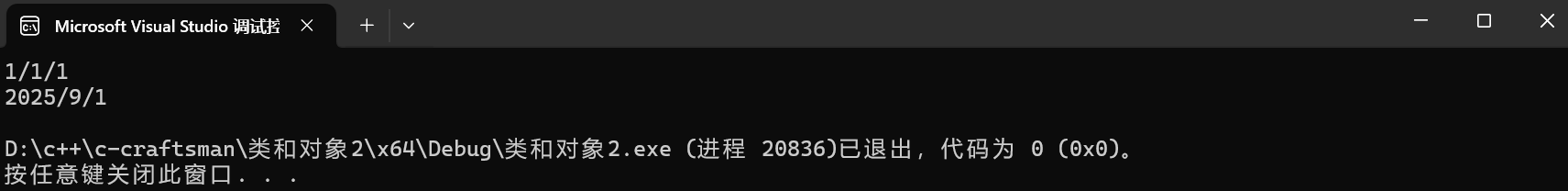 Date d1; //会自动初始化,调用1或者3,不能同时存在(我上面给3注释掉了,因为2和3也不能同时存在)