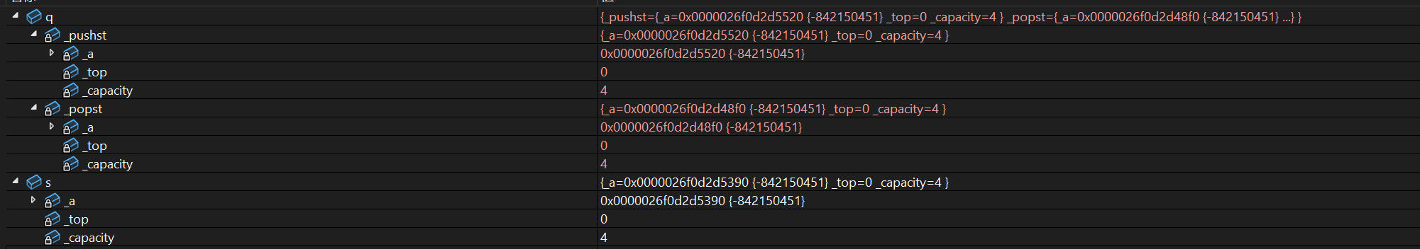//后定义的先析构,所以这里先析构q,再析构s.可以调试观察