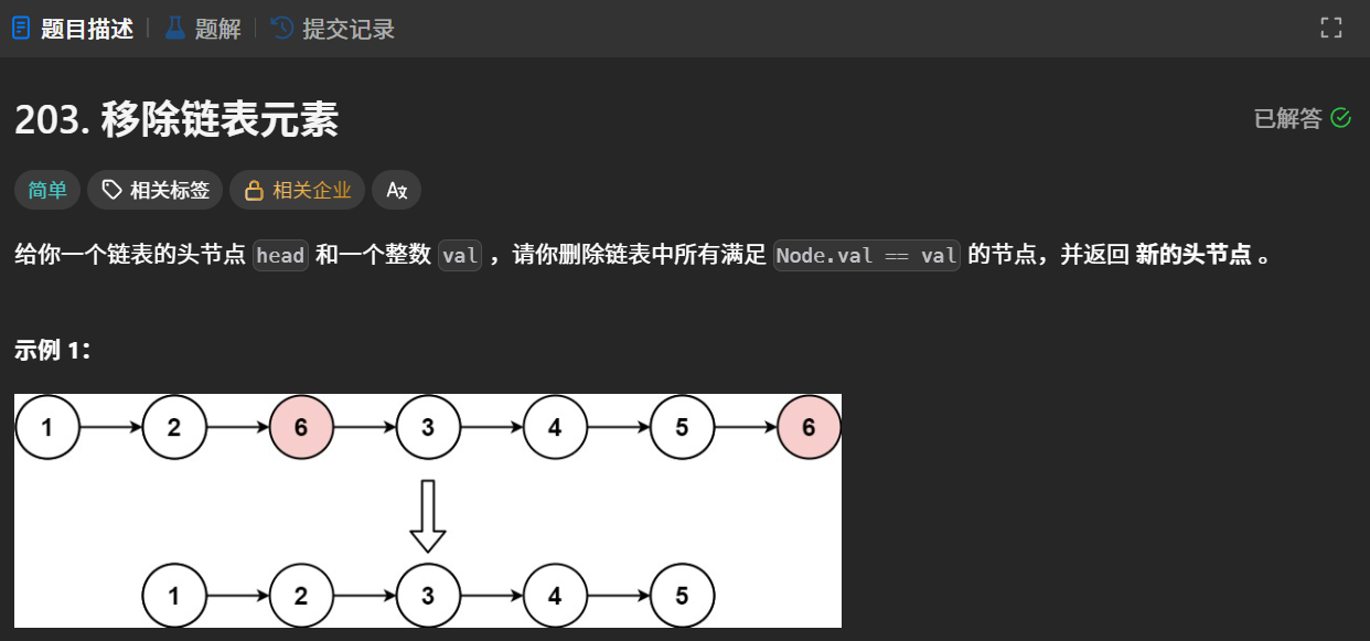 head和一个整数val,请你删除链表中所有满足Node.val == val的节点,并返回 新的头节点 。