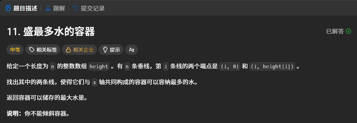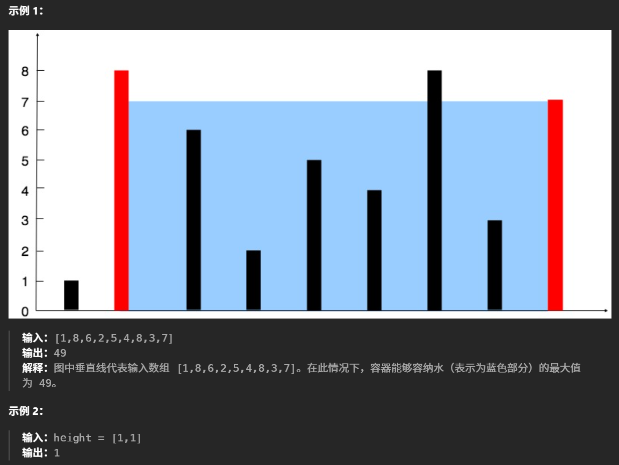 设两个指针 left ,right 分别指向容器的左右两个端点,此时容器的容积:
