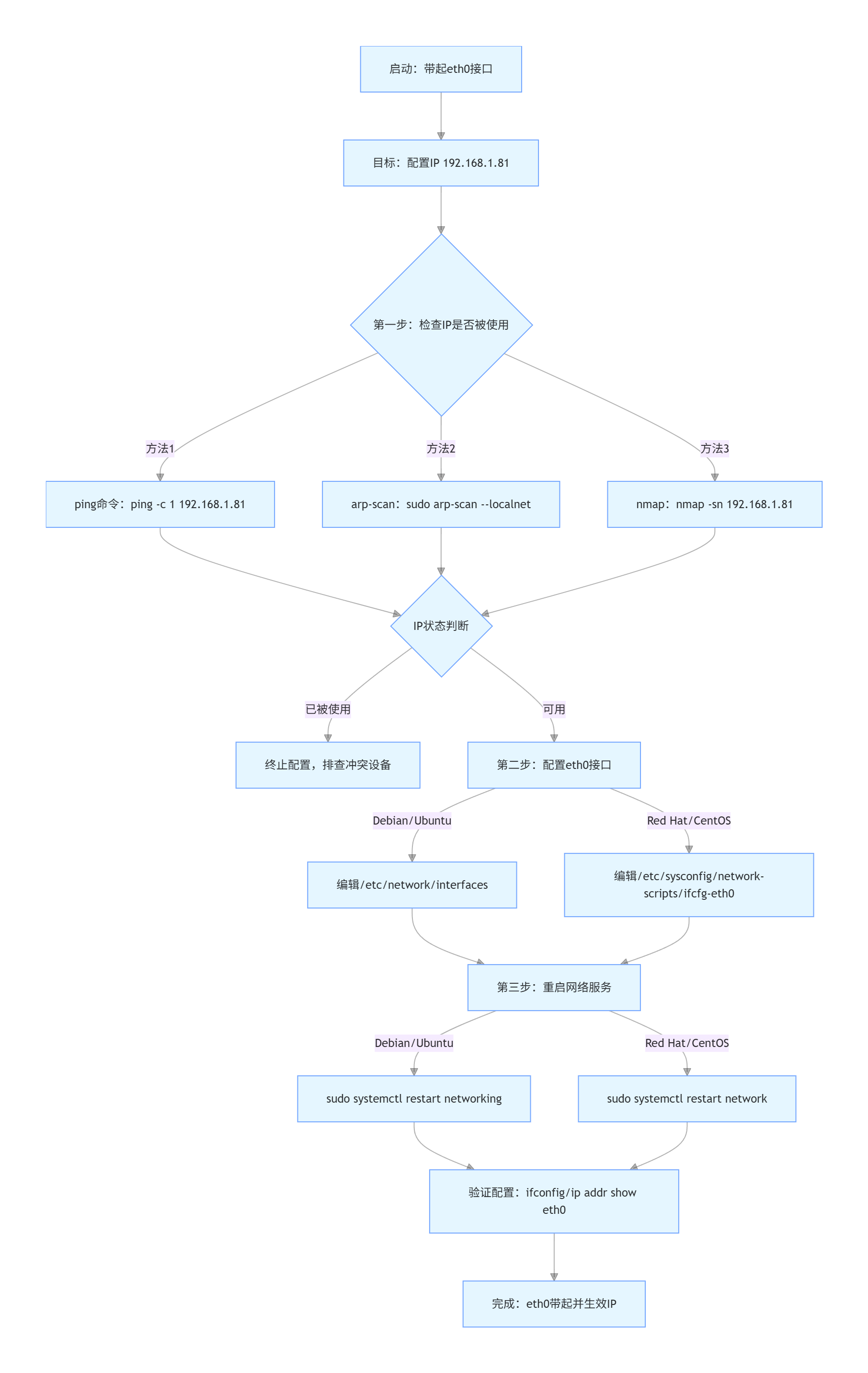 ifconfig eth0 192.168.1.81 netmask 255.255.255.0 upip addr add 192.168.1.81/24 dev eth0ip link set eth0 uparping -I eth0 192.168.1.81当你看到“Bringing up interface eth0: Determining if IP address 192.168.1.81 is already in use”这样的消息时,系统正在执行一个重要的步骤,以确保网络配置的安全性和正确性。通过发送ARP请求,系统可以避免IP地址冲突,确保网络接口能够正常工作。